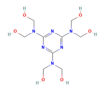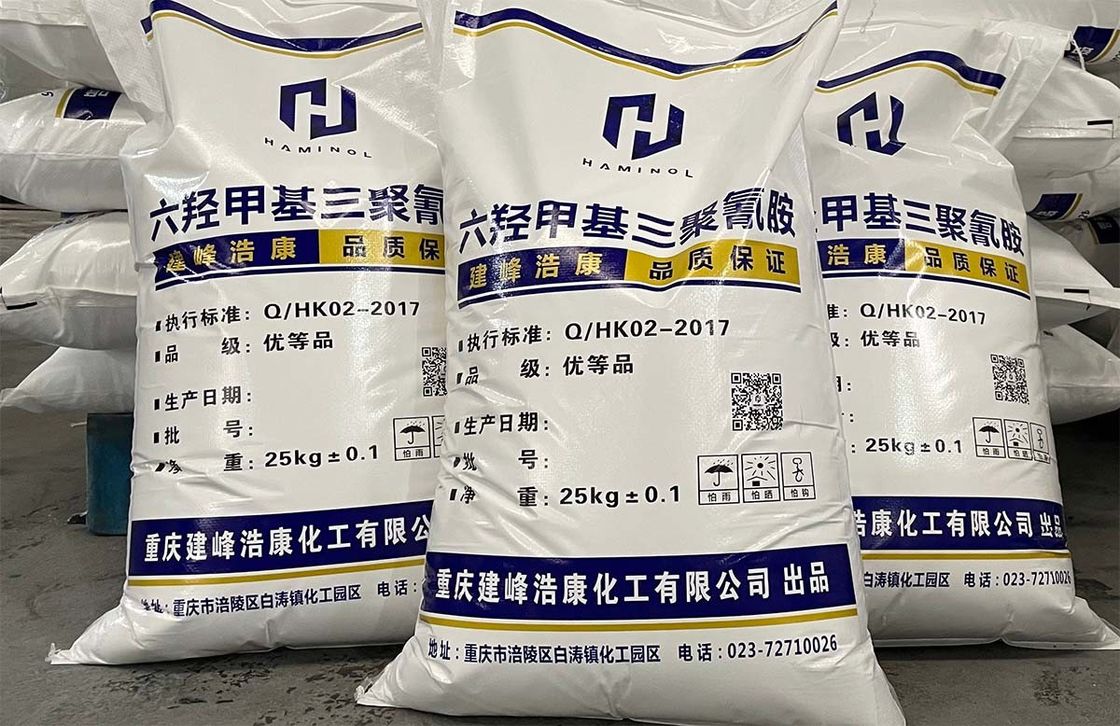 Продукт главным образом сделан из меламина и формальдегида с высокими молярными коэффициентами через реакцию hydroxymethylation, законченный продукт кристаллический мономер структуры кольца триазина, основная группа оксиметильн, оно имеет превосходное леча свойство и crosslinking свойство, смогите прореагировать с различными группами, агент образования поперечных связей широко использует в полях резины, краски, бумаги, ткани и подобия.